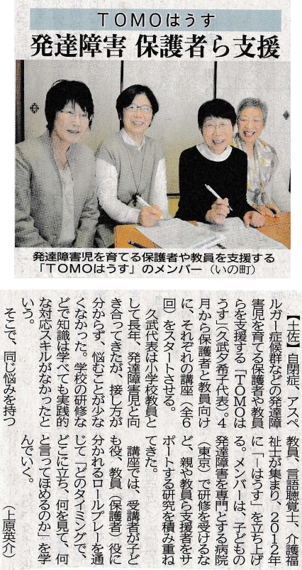 特集「発達障害の子ども・家族を支援 代表つとめる女性の思い」 で紹介されました。